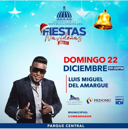 El ayuntamiento de Comendador nos llena de alegría este domingo 22 de diciembre, al traer a tarima el bachatero que nos haces vibrar «Luís Miguel Del Amargue», ese mismo (el tumba brío).