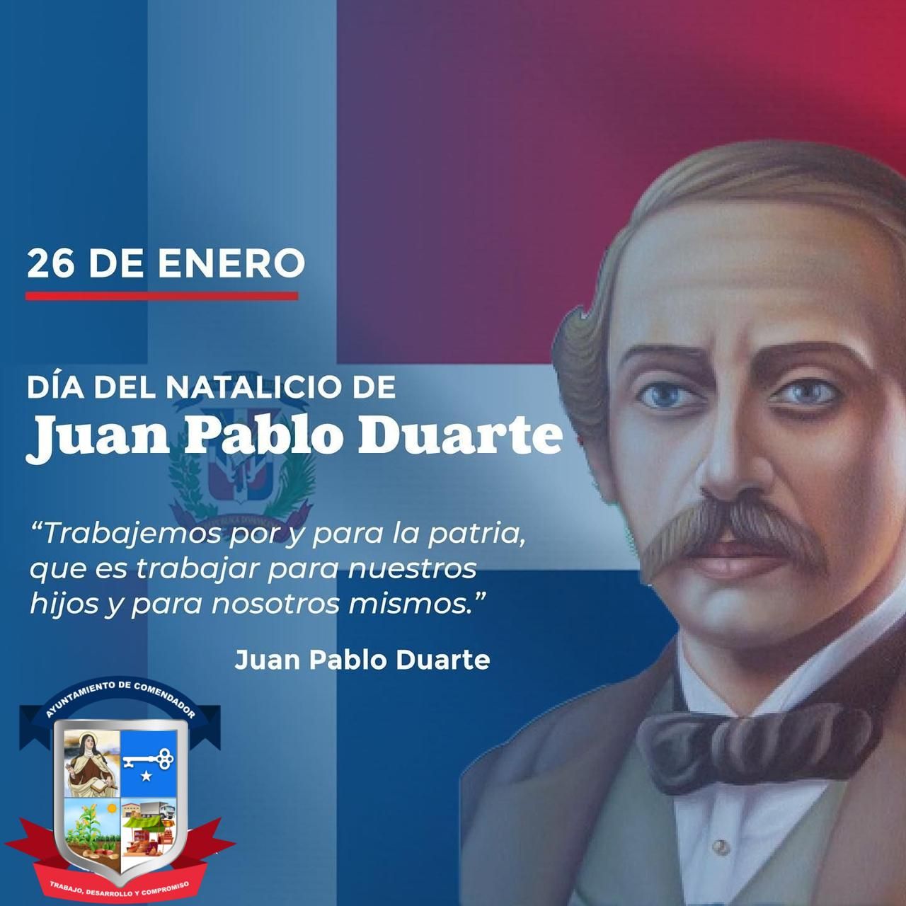 enero 26, 2025 #Hoy en el Día del Natalicio de Juan Pablo Duarte honramos su legado como padre de la patria y reafirmamos nuestro compromiso con los principios que nos fortalecen como país. #DíadeJuanPabloDuarte Comparte y Comenta